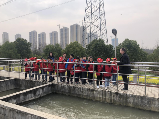 “我們城區的生活用水來自漢江,大家看看現在水池中水的顏色,我們接著往下參觀……”在公司三水廠工作人員的帶領和介紹下,小記者們看到了處理前的原水。由于他們大多是第一次參觀自來水廠,對每一步工序、每一處管道、每一種儀器都充滿好奇。他們有的在不停追問,仔細探究水處理過程中的每一點細微變化;有的認真做著記錄,若有所思,與家長和同學進行探討。